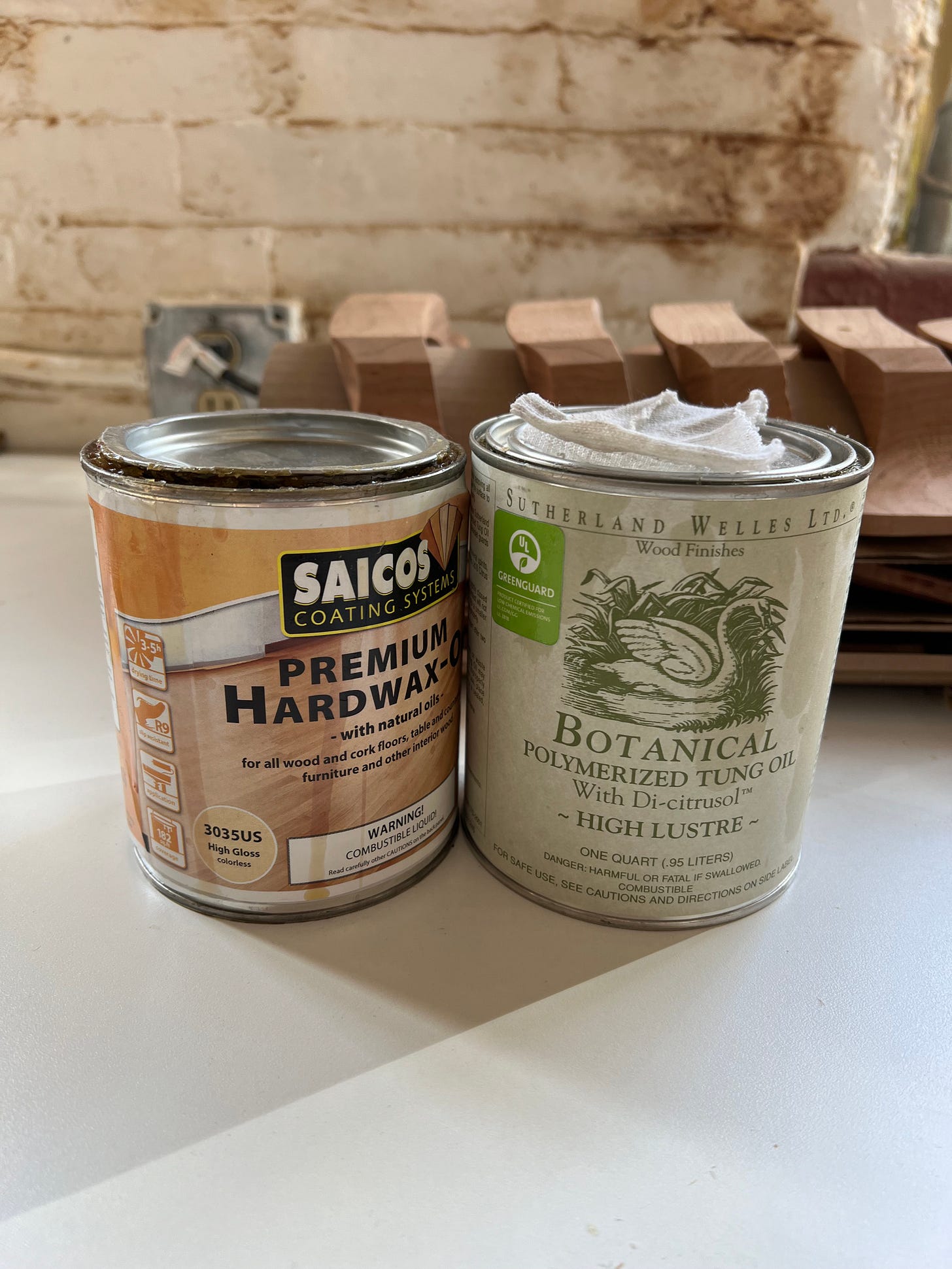 Finding the right coating also became a challenge. Again, my past came back to haunt me with visions of plasticky, yellowing, chipping polyurethane. I needed to find a hard wearing finish that would stand up to daily use and not look like it was coated in honey. I’ve tried lots of solutions. Some never dry, others water spot easily, a few shine like the sun and most get me high.