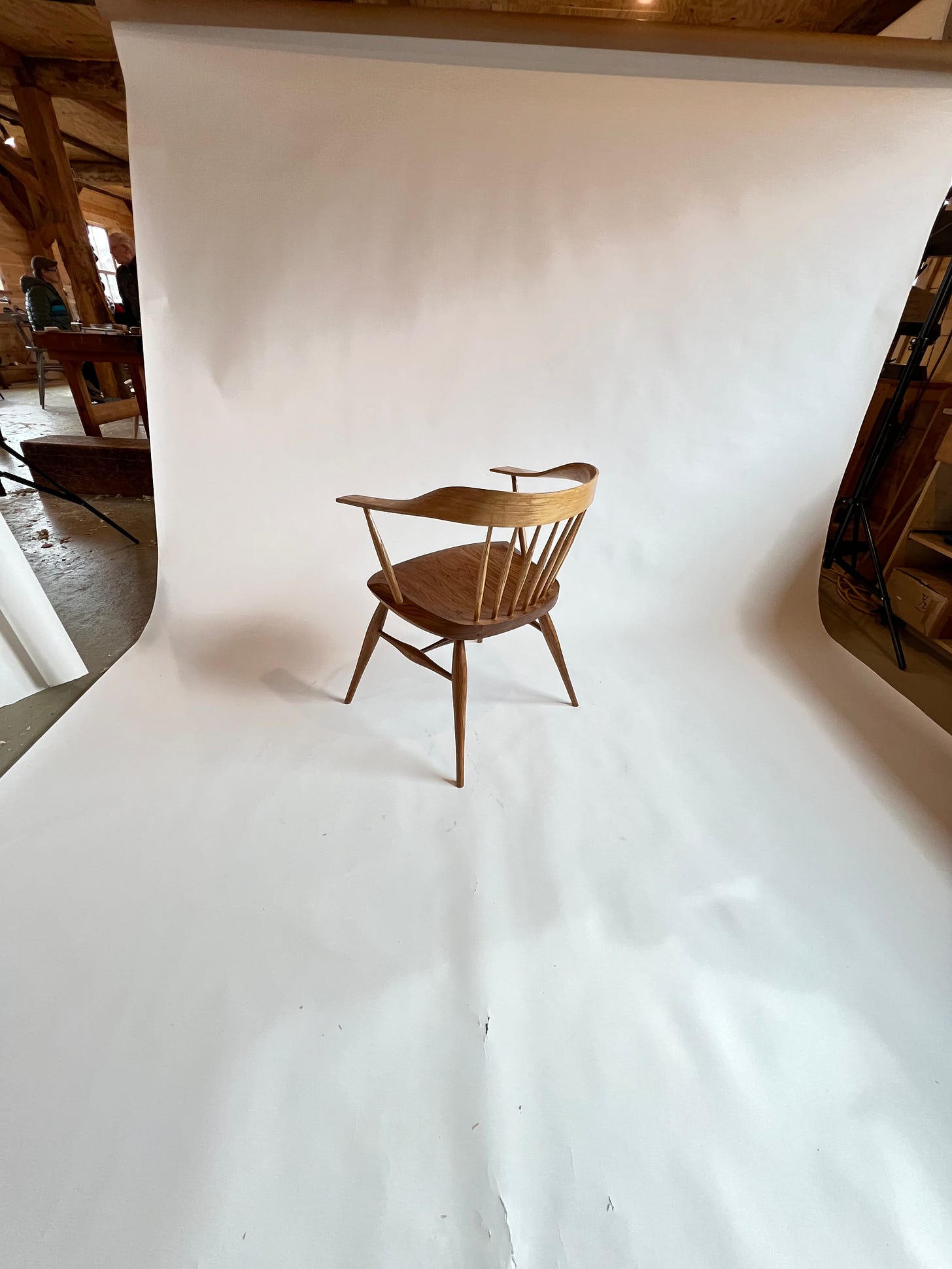 I plan on making a more permanent set up for photography, but this worked out well. Once I had the shot I wanted, I used procreate to select the white background, lighten it and reduce the saturation. I like the effect of still seeing shadows rather than just having the chair float on a white background.