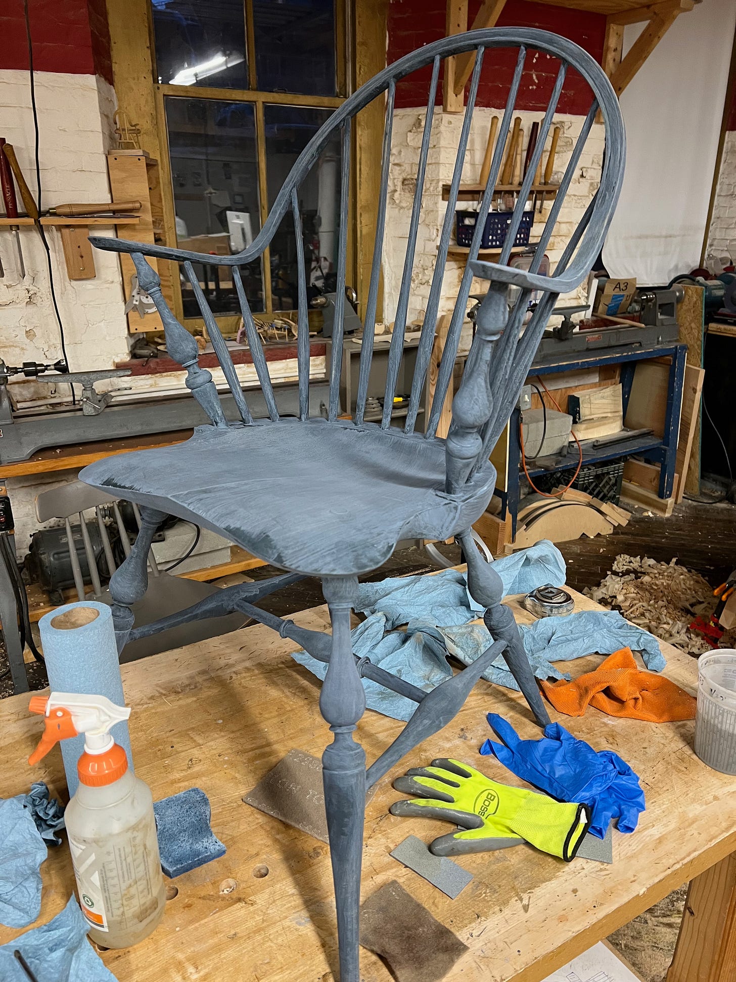 I finished up the refurbishing on the continuous armchair for Lie-Nielsen. Here is a show of the arc of the efforts.