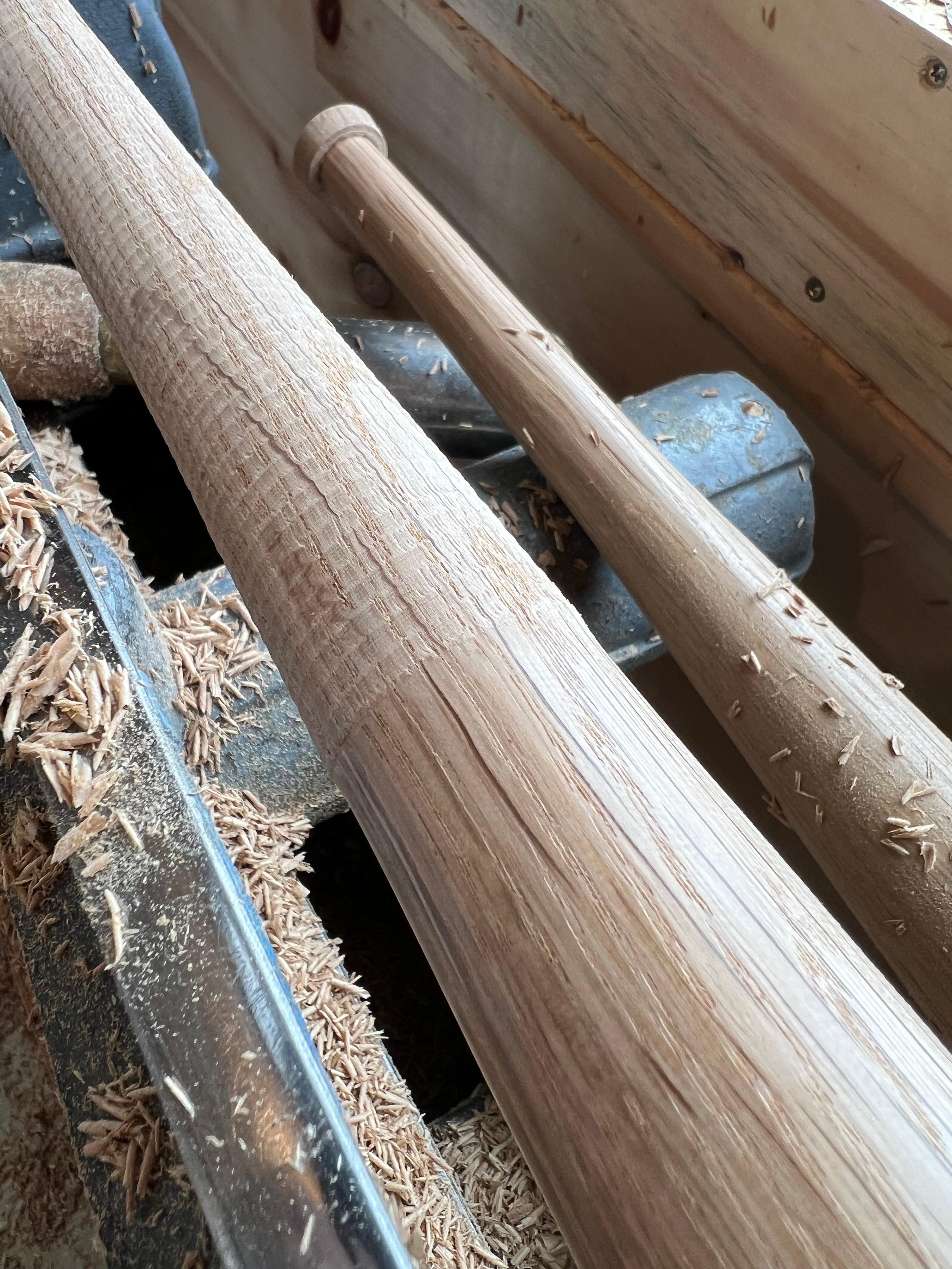 The seat is a single piece of butternut. I have a dwindling stock of this I bought over a decade ago and occasionally pull a seat out. I love this stuff, it’s the perfect balance of hard and soft. It can be a bit stringy, but sharp tools can tackle the issue. While turning white oak for the legs, I was reminded how wonderful it can be to turn.