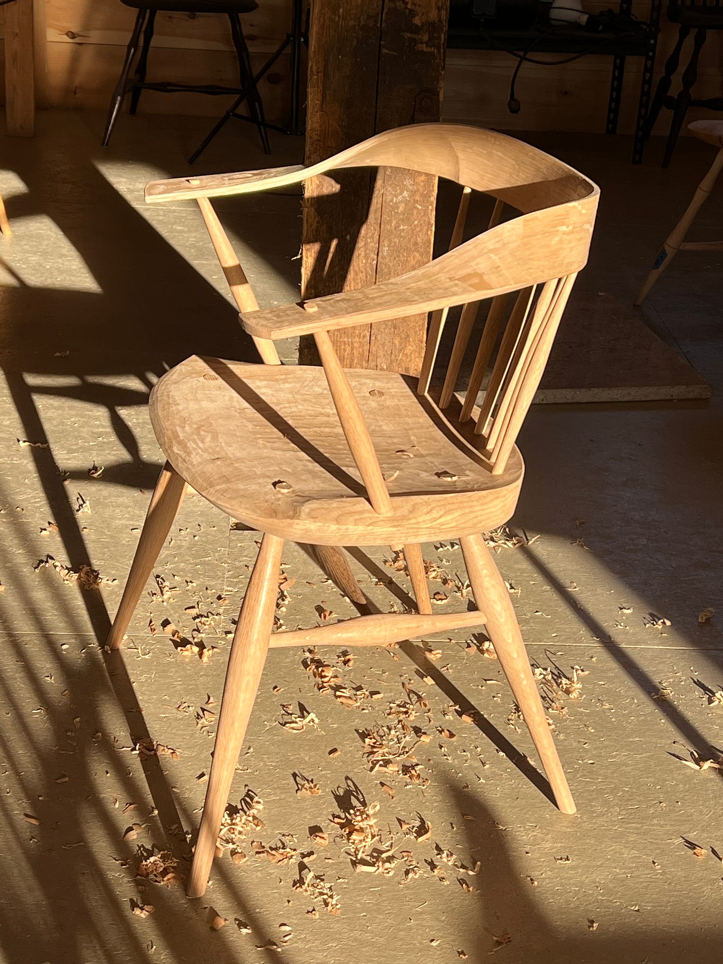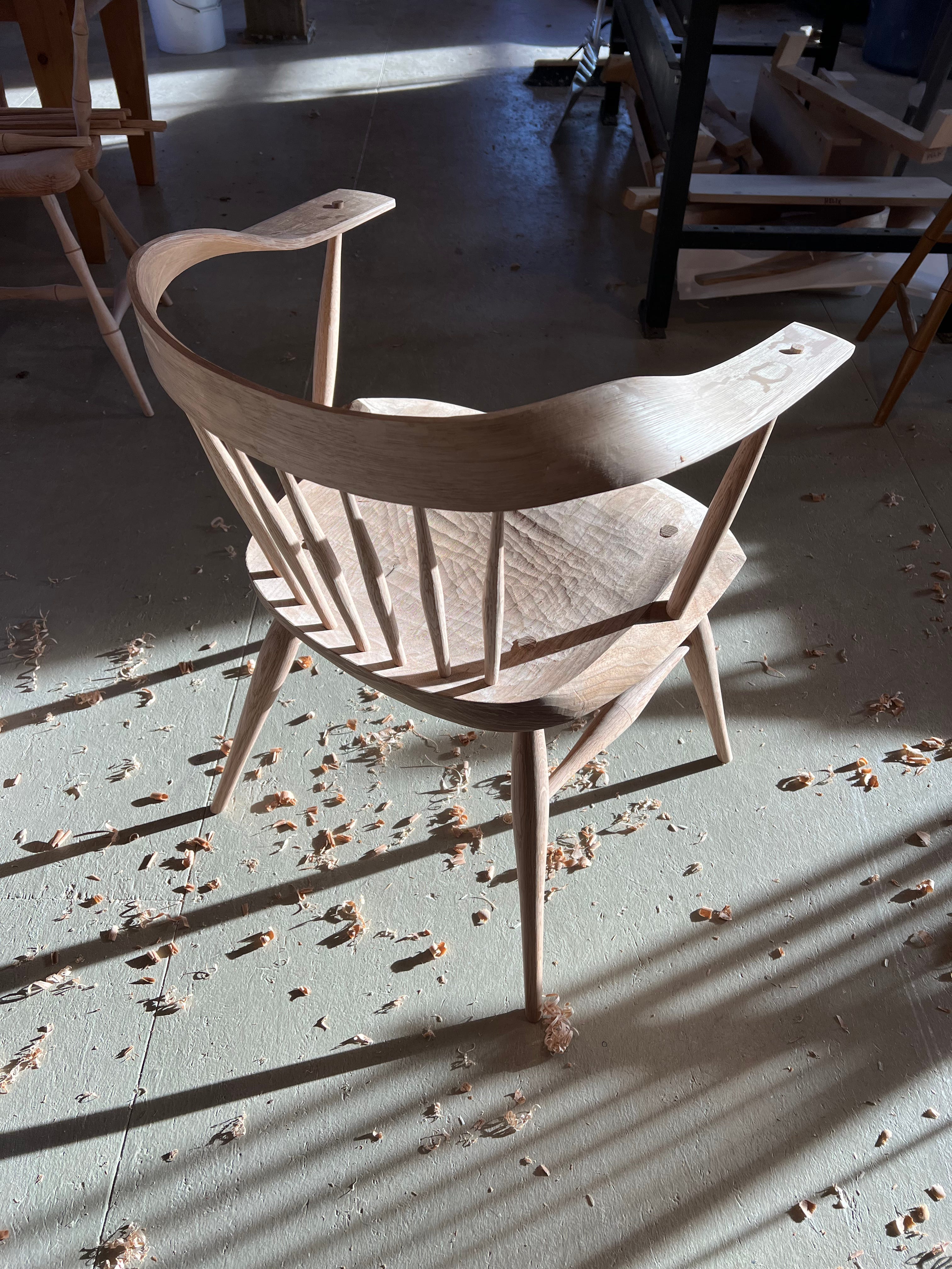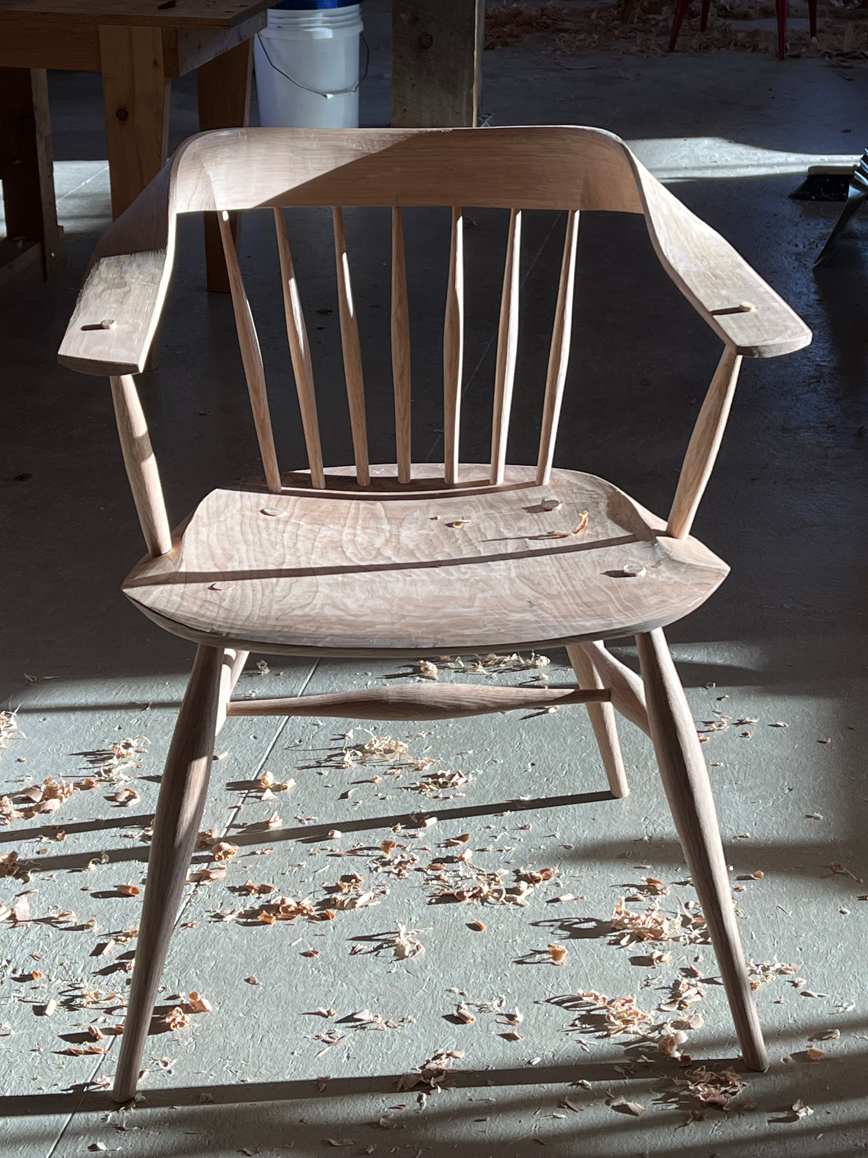 Above is a leg I was skewing to finish. I stopped so you could see how lovely it finishes with the skew. I should get this chair together in the next day or so (this week) and some finish on it soon. I’ll be showing how I use a raw tung mix to get great color out of the white oak. The mix of white oak and butternut avoids any jarring mismatch in color. They even take on a similar color and value when fumed in ammonia.
