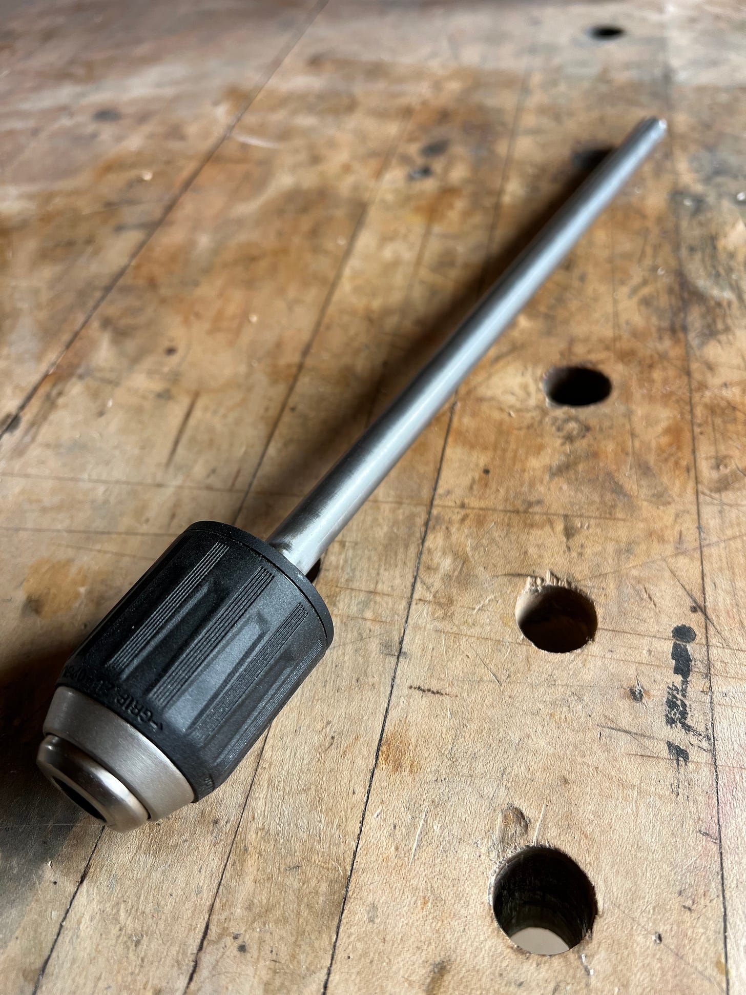 I’m probably jumping the gun a bit, but I’m super excited about this new offering. I’ve been meaning to do this for a while, but alas, everything else was pulling me in too many directions. I recently had some rods machined to fit in drill chucks and now, instead of fussing with extension rods, couplers and allen keys, I can do my extension drilling just as fast as chucking up a bit. Plus, I can use any sized bit with a shank 1/2” or smaller. I had tried other options where the chuck has a built in coupler, but the length of the unit became cumbersome and created challenges I want to avoid.