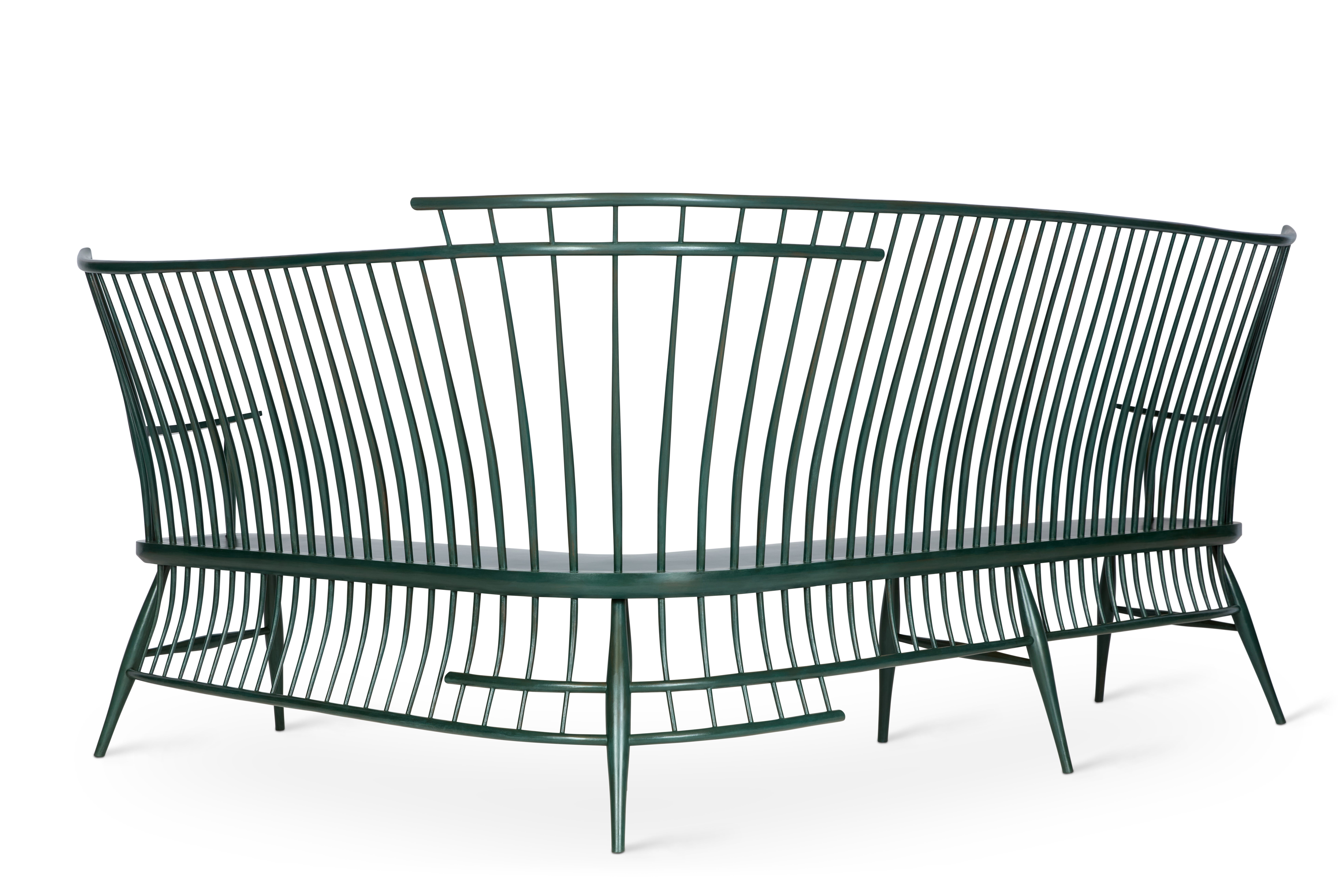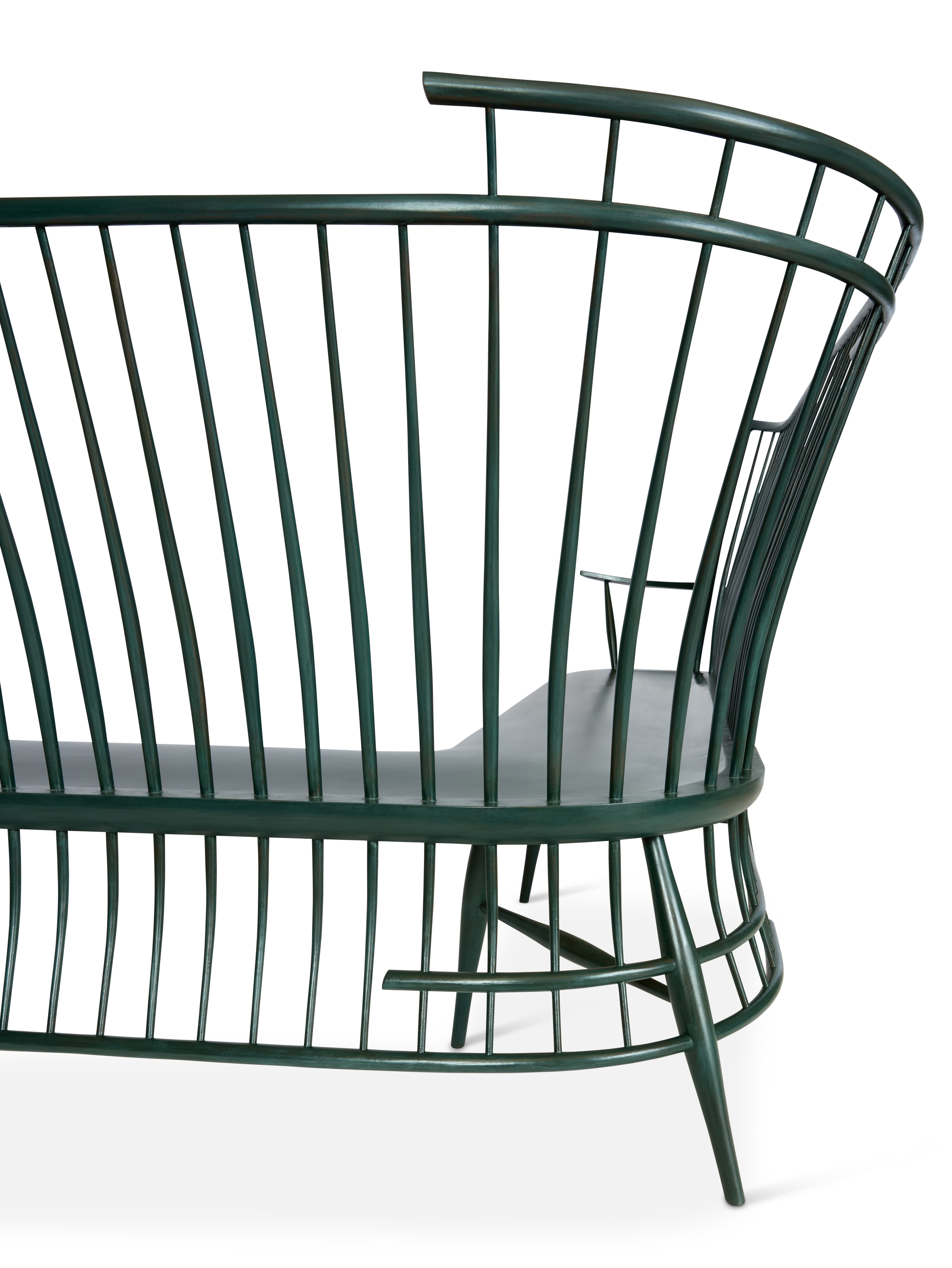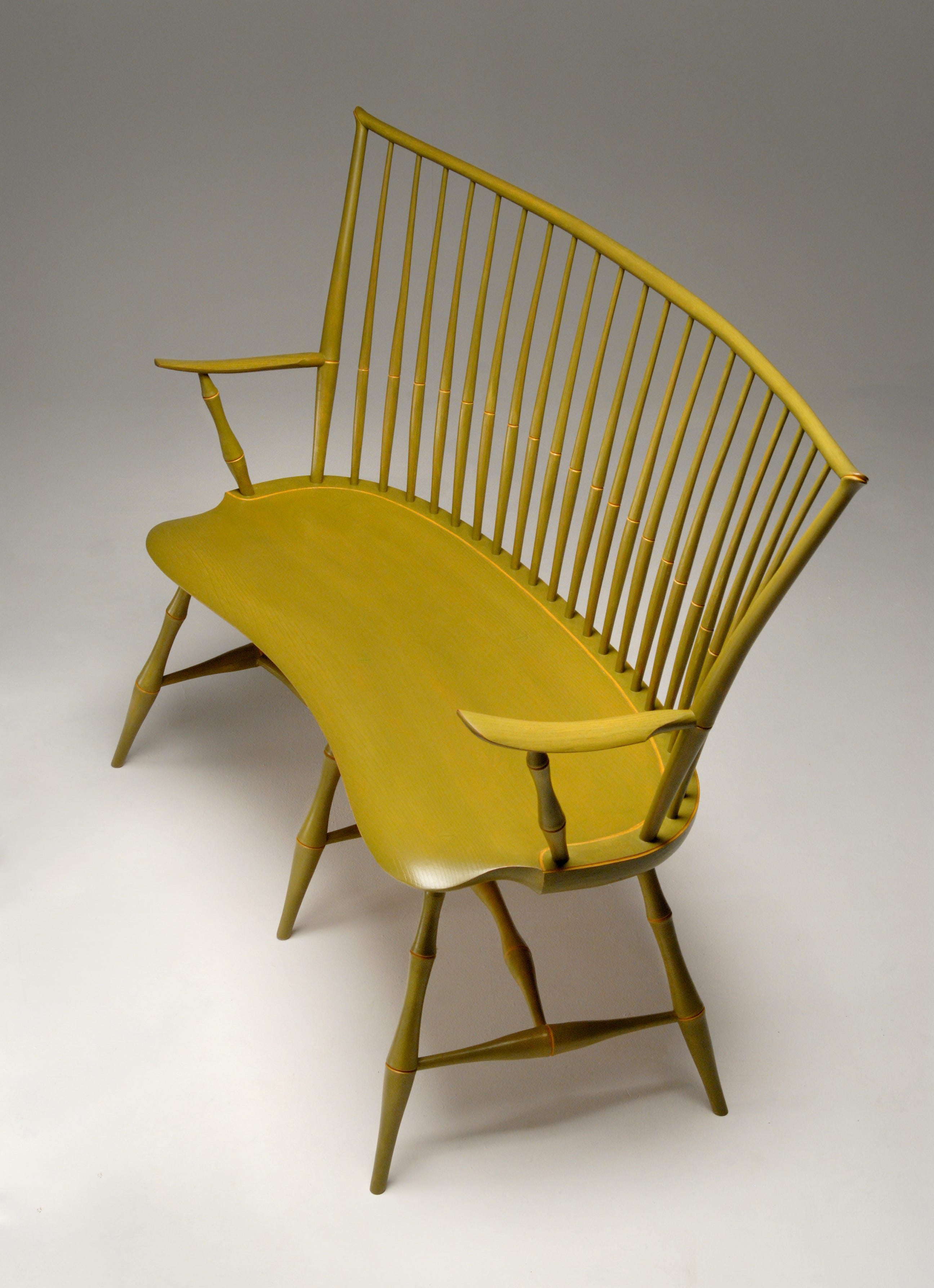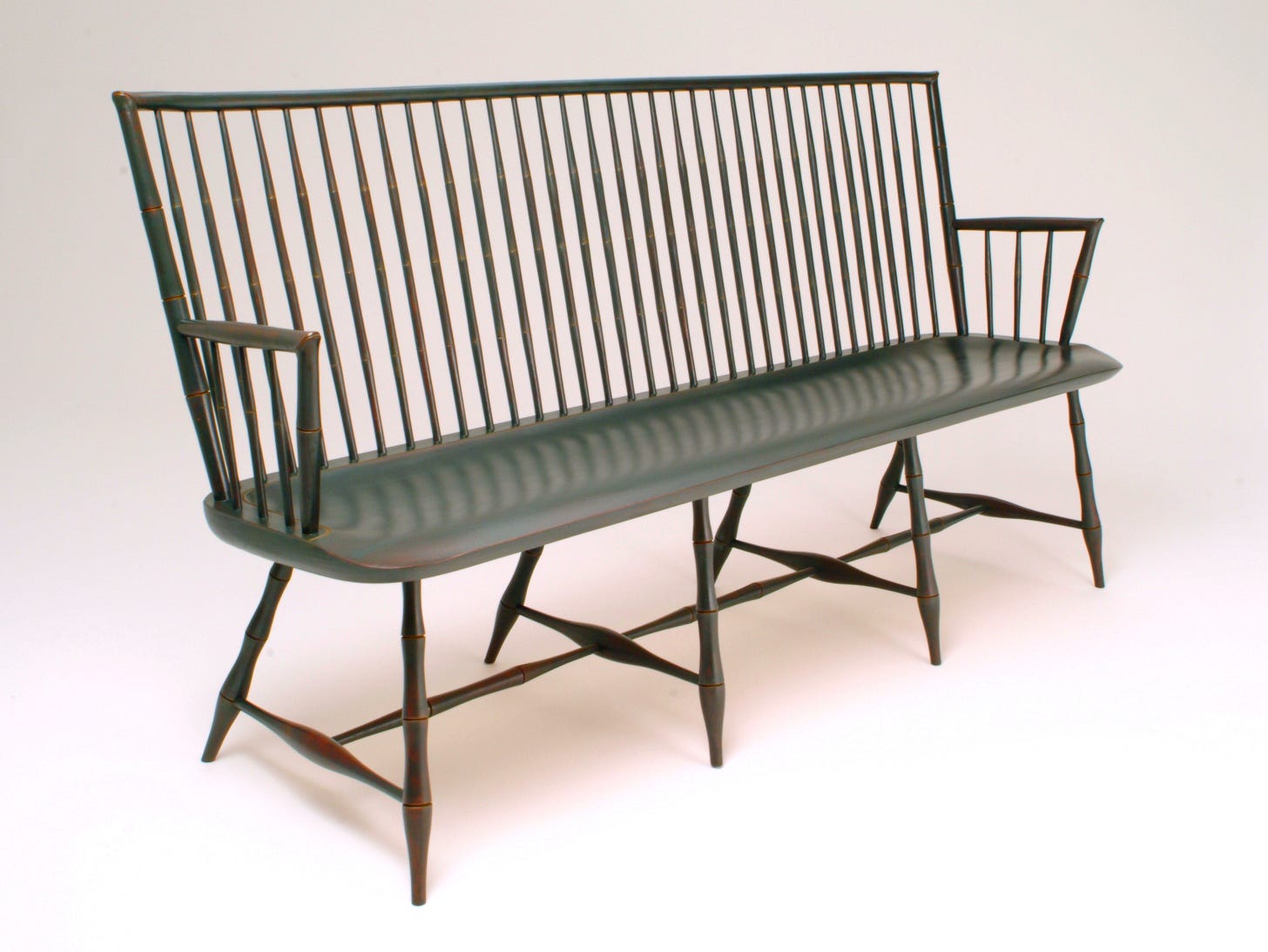 I wasn’t drawn to making windsor chairs through a love of traditional forms or reproduction, but by the organic flow I found in clean lines of the birdcage form. The large scale of benches is a wonderful showcase for the lines to really sing.
