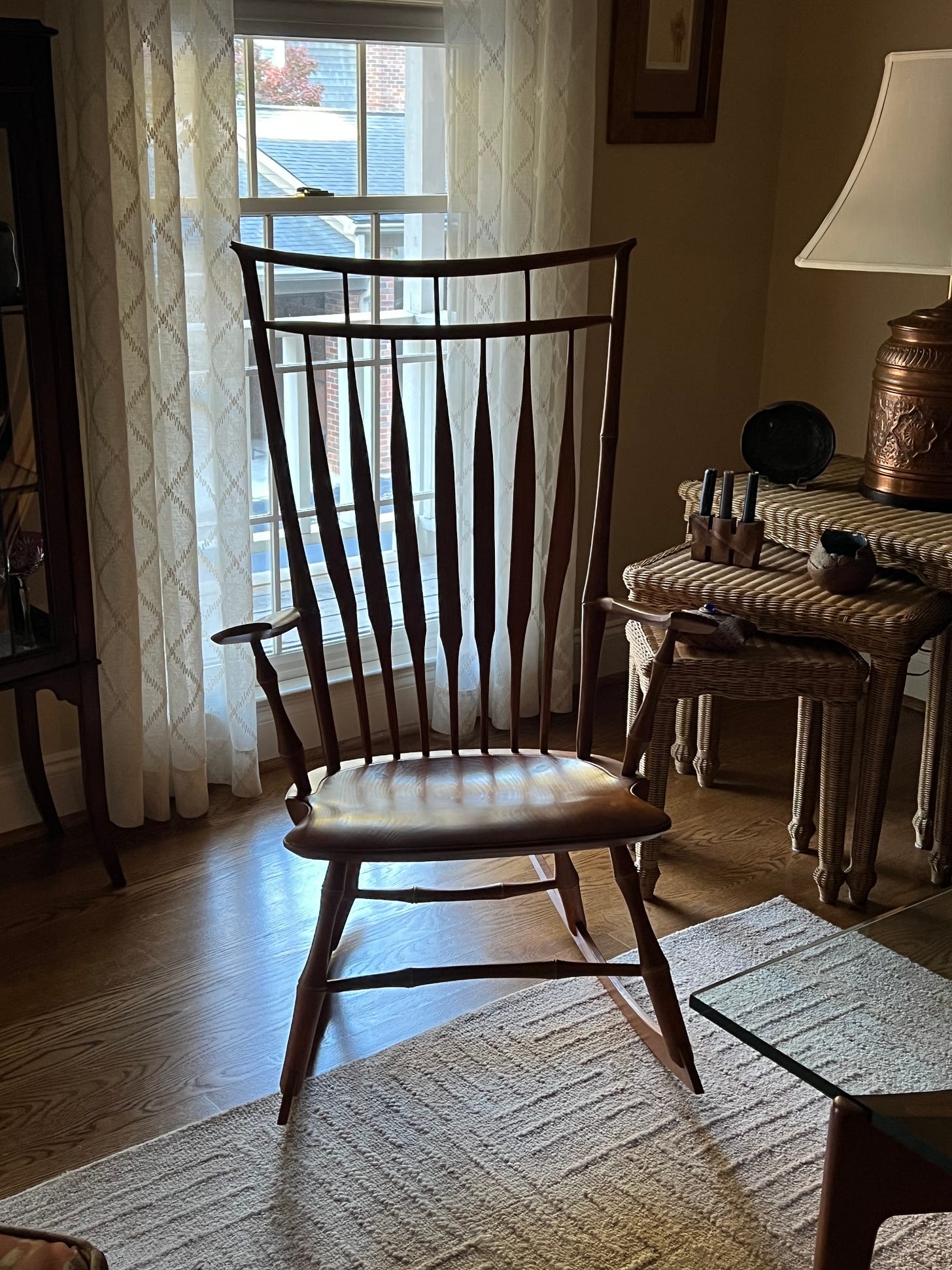 And I’ve decided to meld my Modern Rocker with a Birdcage Rocker design I made long ago to offer a Birdcage Rocker Class. I’ll post an image of the chair once I get it done, but here is the inspiration. I made this one about 12 years ago.